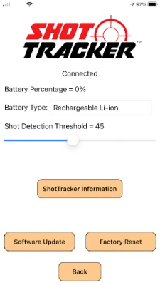 3. Configure battery status monitoring and adjust the Shot Detection Threshold on the ShotTracker screen