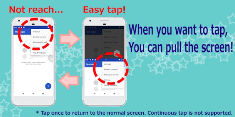 - In one-handed operation mode, continuous taps are not possible (tap will return to the original screen)