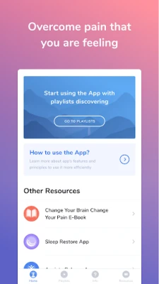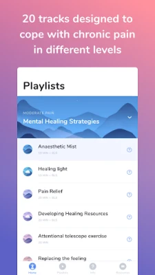The application comprises 3 playlists for controlling pain and associated stress that can maintain pain.
